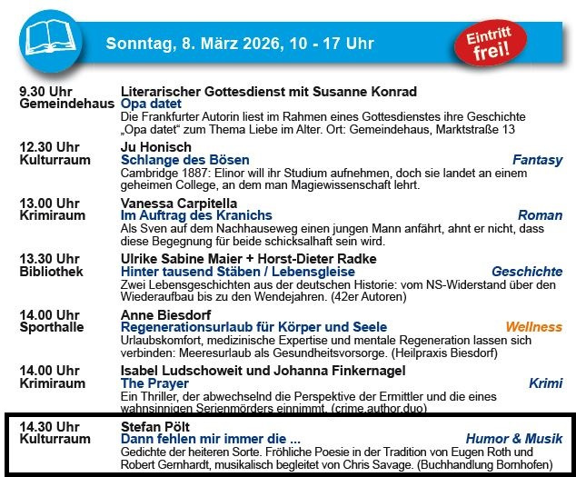 Am 14. März 2026 sind Chris Savage und ich mal wieder für eine musikalische Lesung auf der Buchmesse im Ried. aufgetreten.
